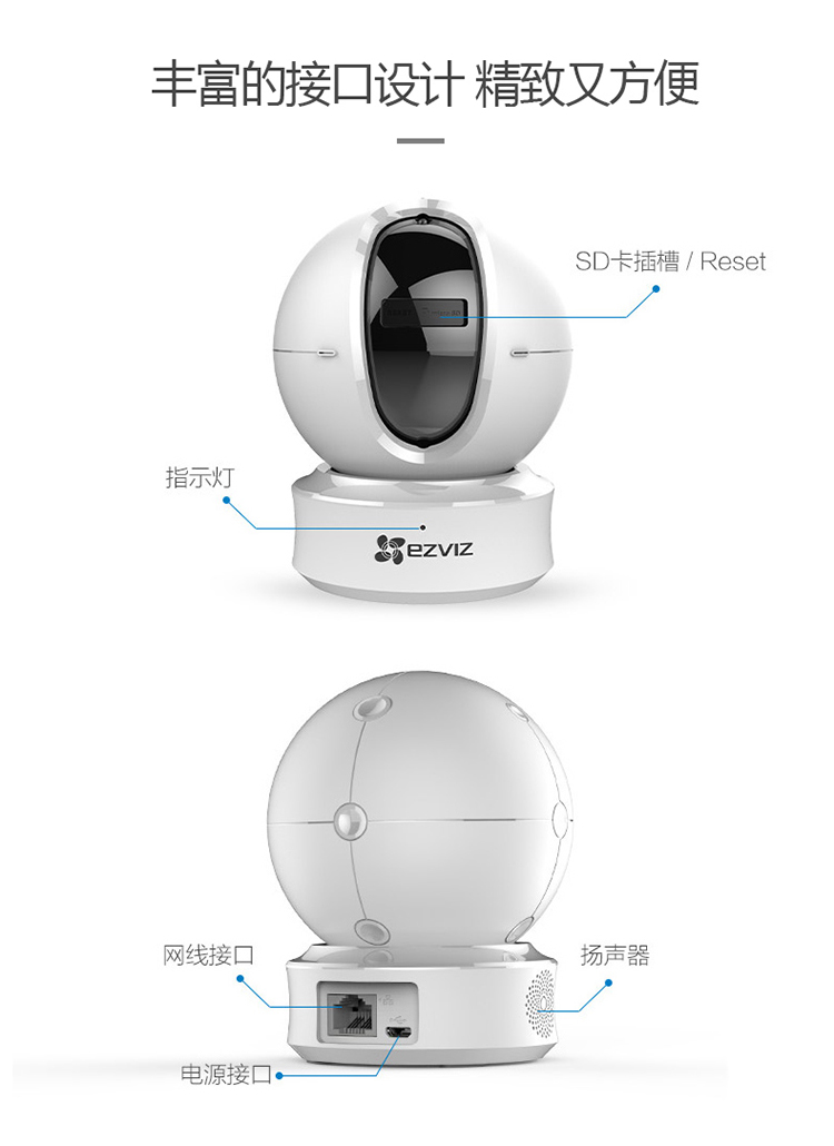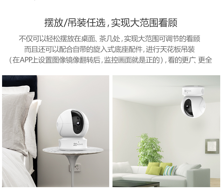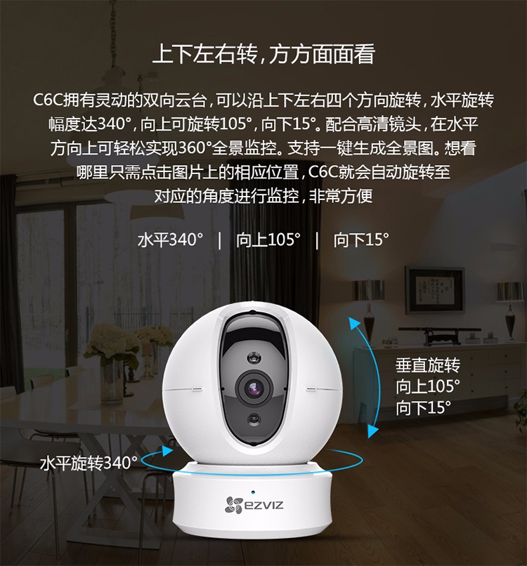 海康螢石C6TC家用云臺監控攝像頭帶移動偵測電話提醒